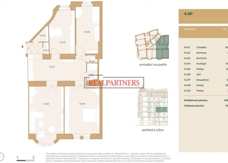Nový byt 3+kk o ploše 92,2m + 14,1 m² balkon ve výstavbě v nadčasové novostavbě.